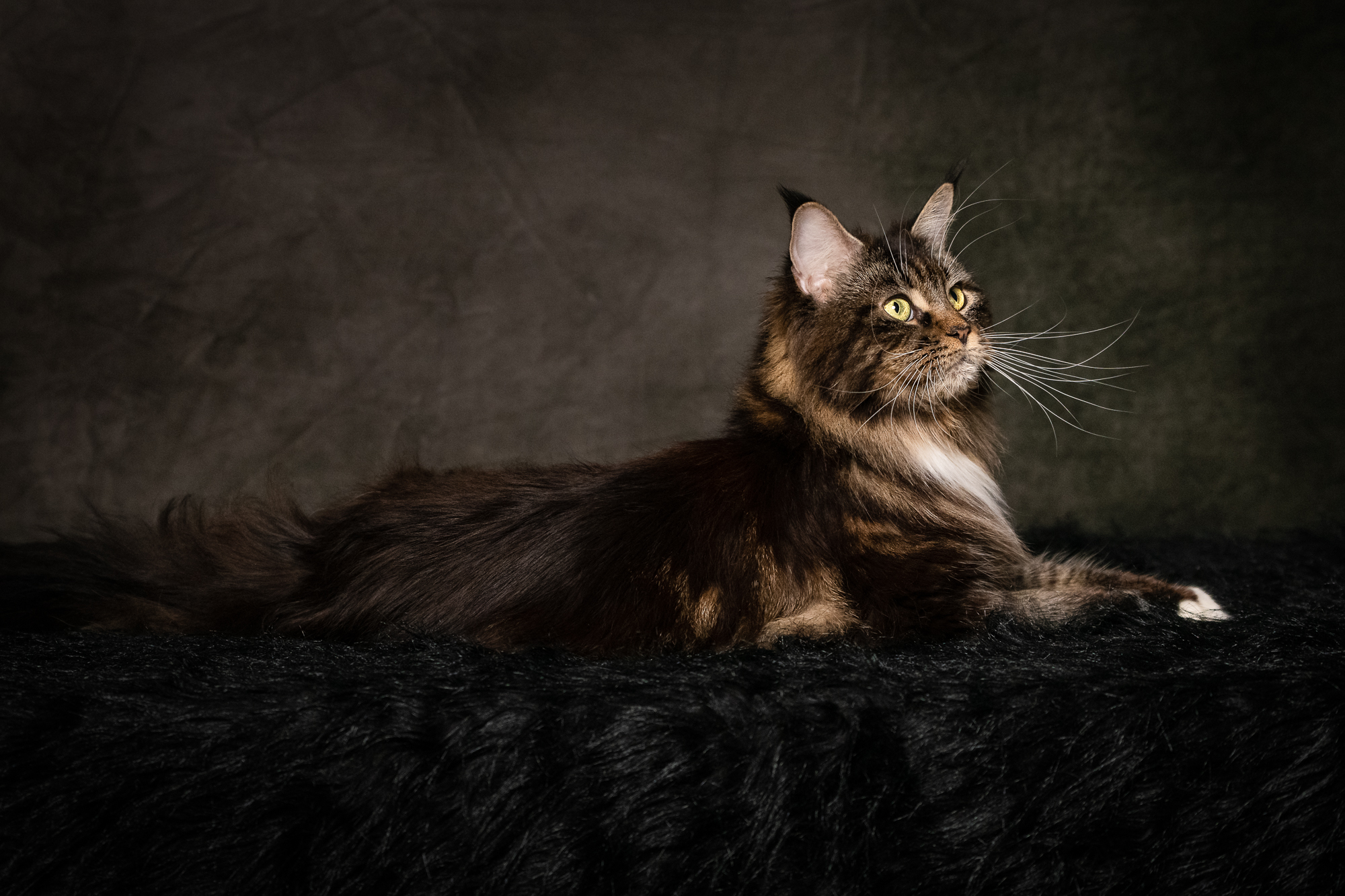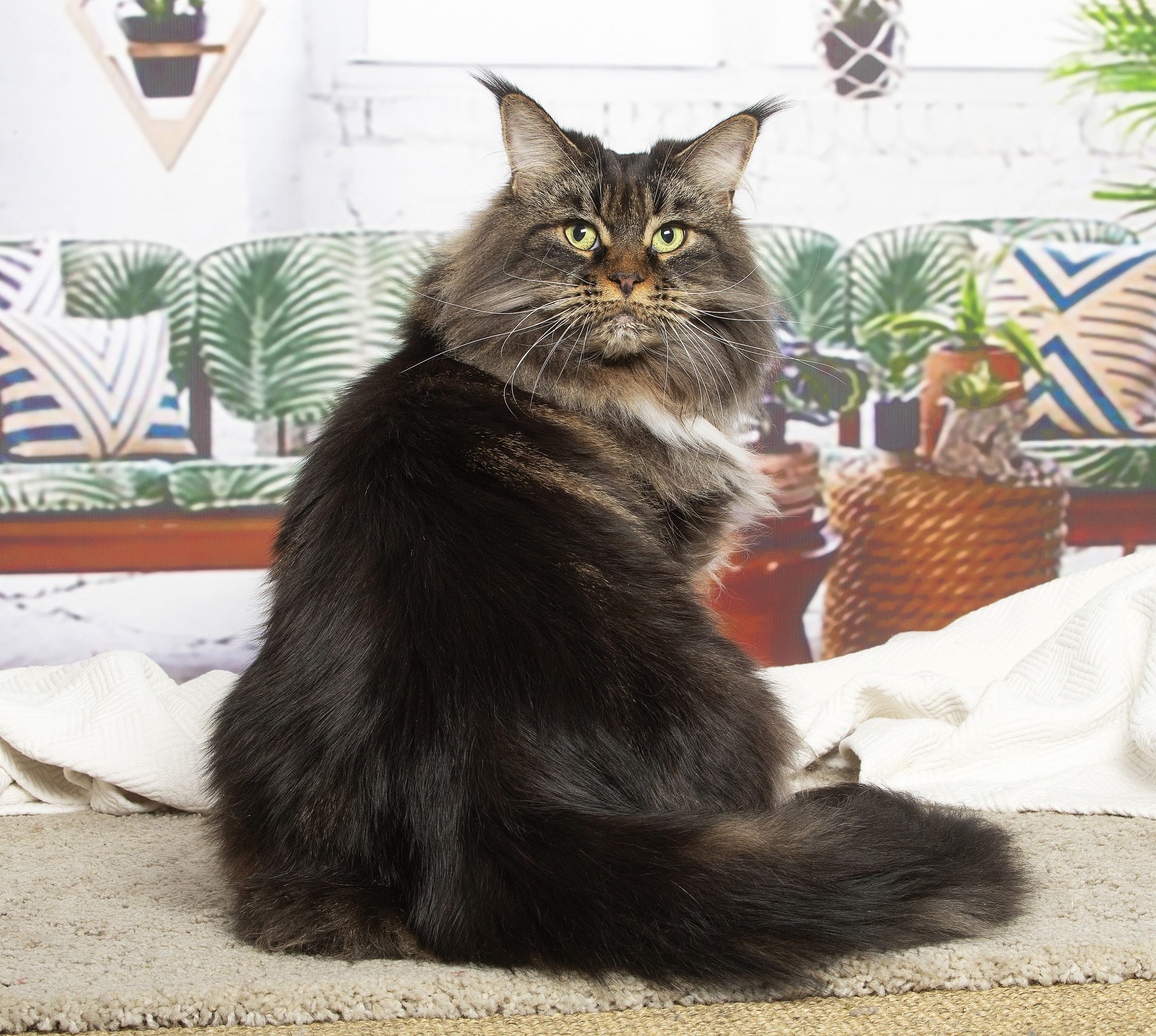 Linette est une femelle Maine Coon brown blotched tabby & blanc née le 14 novembre 2015 au sein de notre chatterie de Maycoonfolie’s. Reconnue pour son type marqué, son gabarit solide et sa lignée prestigieuse, elle fait partie des reproductrices les plus influentes de notre élevage. Aujourd’hui stérilisée et parfaitement retraitée, elle reste une présence douce, élégante et extrêmement attachante au quotidien.